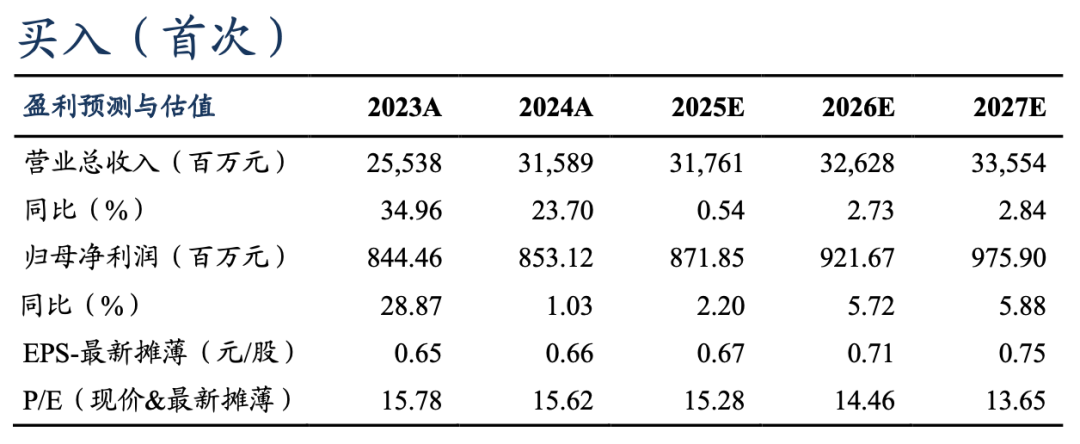 供应链及延伸:业务保持相对稳定,假设2025-2027年收入微增,毛利率略有回升。